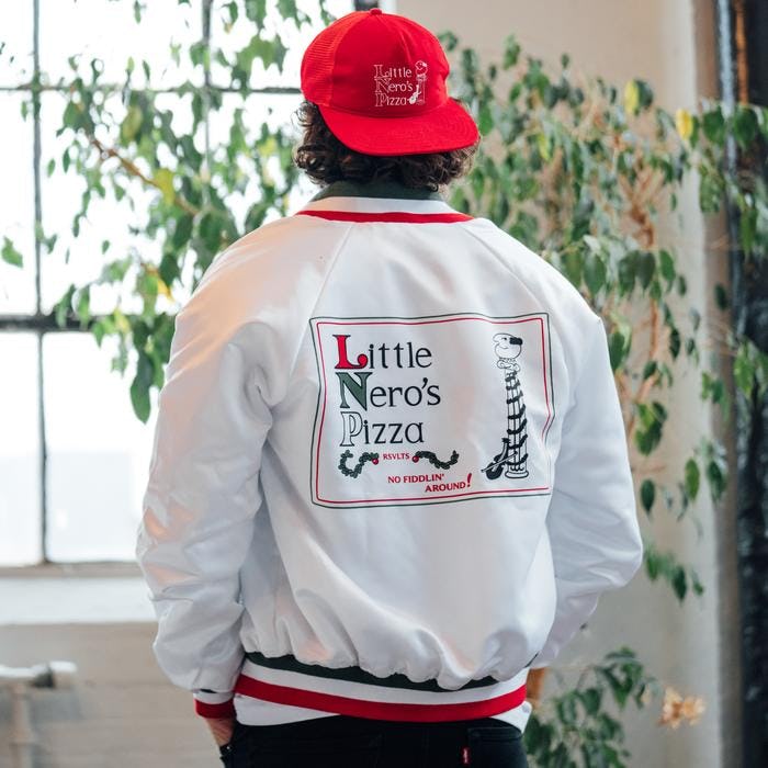 "Keep the change, you filthy animal." Anytime I hear that line, I can see the blonde teenager who'd just knocked over a lawn ornament staring down at his 20-cent tip, bedecked in his white satin bomber jacket and red hat. The outfit is absolutely iconic for all millennials who grew up idolizing all things Kevin McCallister, and now, it's available for purchase. You need this Little Nero's Pizza Jacket for every holiday party you're invited to. Literally, every one.