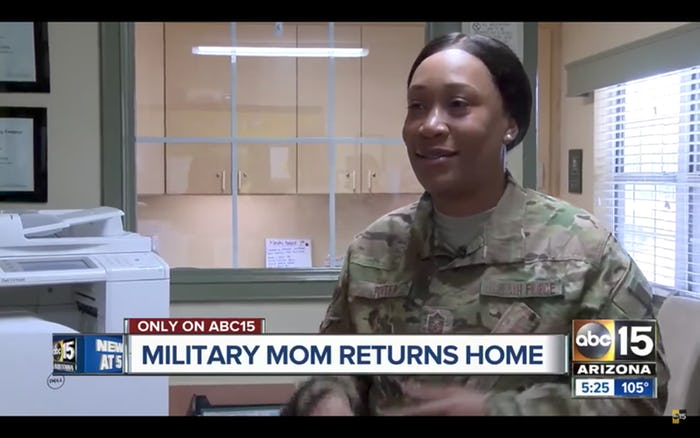 As for Porter's other son, Bryce, she played a bit of a trick on the boy before surprising him with her arrival. She chatted with him over FaceTime while he was at his school, Arizona’s Crown Charter School. During their conversation, she slowly revealed to him that she was, in fact, outside of the school doors. In true military brat fashion, Bryce ran into his mom's outstretched arms for their first embrace in seven months.