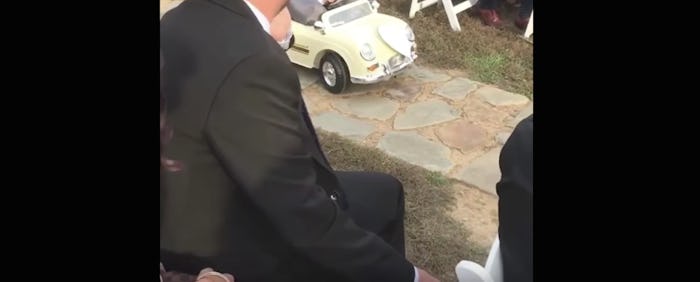 Maxen was supposed to take a trip in the remote controlled car to greet his dad at the end of the aisle, carrying a sign that said "Daddy, here comes mommy," according to NBC 4. And Maxen did do that except, just not as seamlessly. Instead, "drunk" off of a recent feeding, Maxen went down the aisle half asleep. Because having him be a part of his parents' wedding half asleep is better than him not being a part of the wedding at all.
