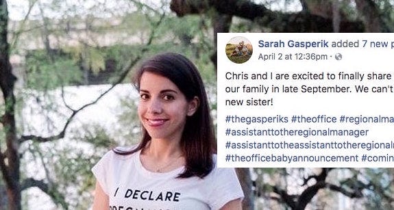 The cutest part might be the way that Gasperik and her husband incorporated their two sons into the announcement, but you have to be a huge TV nerd to get it. There was an episode once upon a time where Jim, who loves to prank his coworker, convinces Dwight that he needs to hold a contest to find an assistant.
