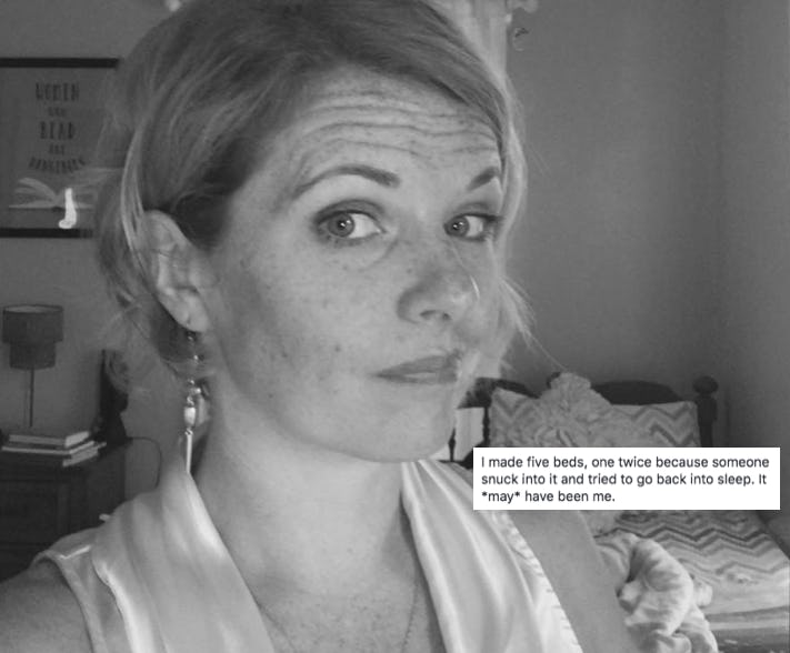 This morning I woke four sleepy humans. Some I gently patted, some I prodded, and one I pulled the covers off and tried to roll onto the floor when the pat and the prod fell short. I'm not proud of that last one. I made five beds, one twice because someone snuck into it and tried to go back into sleep. It *may* have been me.