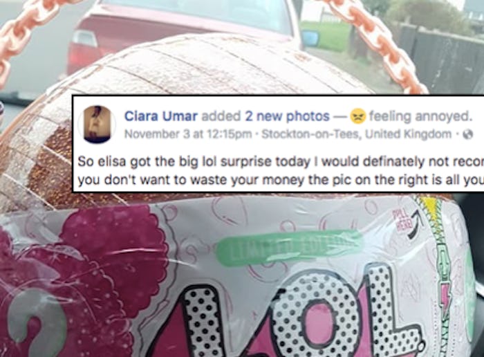 Each year a secret society of 5-year-olds meets to determine what the must-have toy of the year will be and how to most effectively guilt parents into surrendering their nest egg and their sanity to get it. This year's chosen toy is the LOL Big Surprise Toy, but one mom is not impressed by it at all. The high price tag and lack of variation have been enough to garner some bad press for the toy and lead many moms to vocalize their opposition along with her. Romper has reached out to MGA Entertainment, the company that makes the LOL Big Surprise, for comment and is awaiting a response.