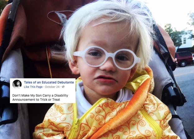 While some might see these communication cards as an opportunity to give strangers a helpful heads-up, Wood wrote in a recent Facebook post that she saw things quite differently. "Don’t Make My Son Carry a Disability Announcement to Trick or Treat," Wood started the post, adding: