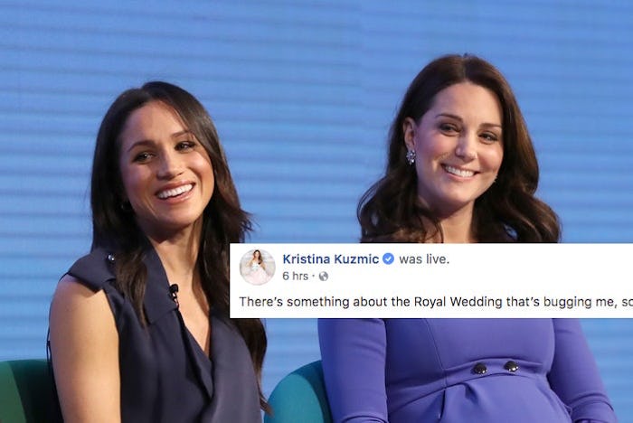 Though the mania of this past weekend's royal wedding is beginning to unwind, it seems that just about everyone has an opinion on Prince Harry and Meghan Markle's nuptials: what they did wrong, what they did right, and of course, how they compared to other royal couples. It's a given that one couple's wedding won't be everyone's cup of tea (pun very much intended), but there seems to be an alarming trend in the mix this time, and some people have identified that it's pretty problematic. Kristina Kuzmic, a vlogger known for her brutally honest videos about parenthood, is not OK with comparing Meghan Markle and Kate Middleton, and it's an important reminder that many people seem to need.
