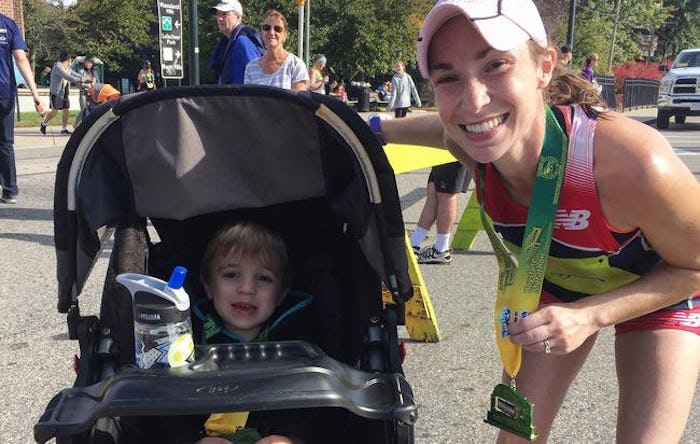 According to Runner's World, Dianna Chivakos ran the Baystate Marathon & Half Marathon in Lowell, Massachusetts on Sunday while pushing her 3-year-old son, Evan, in his BOB Revolution jogging stroller. Chivakos and Evan completed the 26.2-mile course in a little over three hours and ten minutes. The Massachusetts mom shattered the Guinness World Record for running a marathon while pushing a stroller by seven minutes, Runner's World reported Thursday.