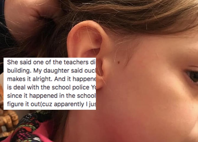 So what happened? According to Jones' original post, she says that Karli came home one day with re-pierced ears after school last week, and told her mother that her teacher did it. The teacher allegedly saw the dents from previous piercings in Karli's ears and simply put earrings through the dents — earrings that Jones claims weren't even Karli's.