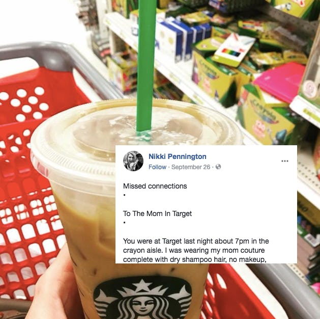 On Tuesday, a mom named Nikki Pennington summed up her quest to find the perfect mom friend in a hilarious Facebook post. Pennington wrote the post in the style of a "Missed Connections" ad on Craigslist, and the message is as funny as it is relatable. The best part? Pennington's story of longing takes place in the ultimate holy land for parents — Target. Uhh, need I say more?
