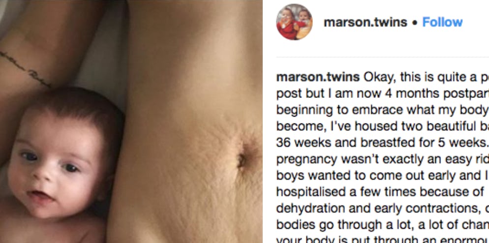 Her followers certainly heard her message. The photo has amassed almost 2,000 likes and hundreds of comments — many of which came from other moms who thanked her for her honesty. One mom shared her own experience with giving birth to twins and her path towards self-acceptance:
