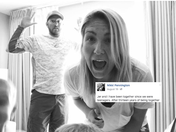 Nikki Pennington, and her husband, Jerred, have been a couple since they were both teenagers, and with 11 years of marriage under their belts — including three beautiful kids — they're pretty used to the age-old "what's your secret?" question. So, on Aug. 19, Pennington decided to just let all of her Facebook friends know the secret to her happy marriage. But, it soon went viral, racking up almost 75,000 likes and 29,000 comments. Of course, any sort of marriage advice is appreciated, but Pennington's is especially helpful by so many because of how simple it is.