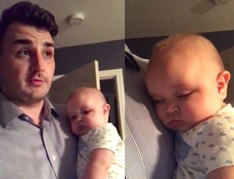 For most parents, it's an all-too-familiar situation. Your baby won't go to sleep, you've sung "Twinkle Twinkle Little Star" 20 times in a row, and you need to try something new, pronto. Well, a New York dad put his son to sleep with the best sleep hack ever, and we're definitely stealing his idea. Turns out that sometimes, at least according to this adorable and hilarious video, all you need to do to send your kid off to dreamland is to talk at length about your job. The more boring it is, the better.