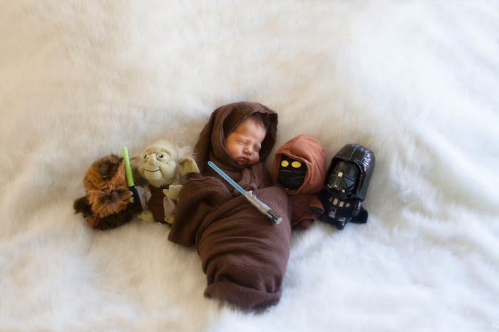 There have been countless Star Wars tributes involving geeky parents and their children out there, especially as we get closer and closer to the opening of The Force Awakens on December 18. Ewoks, padawans, little Princess Leias and Yodas galore are being photographed by their parents, but the Force seems to be particularly strong with this little one, who starred in an insanely cute Star Wars newborn photo shoot. According to photographer Trish McCoy, this little fella (her nephew, in fact) is a bit of a miracle.