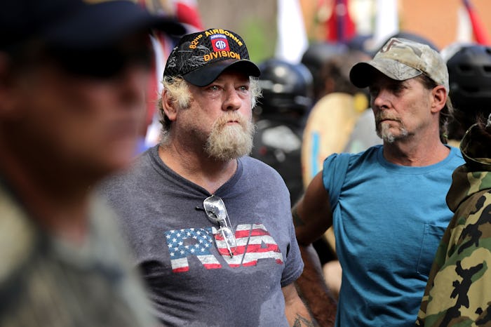 He does have a point about one thing — white supremacy has a long, long, history in America. But the alt-right protestors flanked with guns, racist signs, torches, and Make America Great Again hats have been emboldened by Trump's 2016 campaign and his stubborn refusal to disavow the white supremacists who support him, to the point of being almost petulant about not taking responsibility for his tacit approval of white nationalism. If he won't disavow white nationalism, the least Trump could do is take ownership of its most recent manifestations.