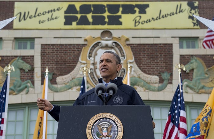 The 2012 photo of Obama is a reminder of that, and shows what leadership and empathy should look like. It's a very different kind of image than the ones taken of Trump on his visit to Texas this week. The now ionic photo, taken by then-White House photographer Pete Souza, shows Obama hugging a woman on the Jersey Shore, which was devastated by the storm just weeks before the 2012 election. It wasn't Obama's first time showing up to support those affected by a hurricane, either. Outrage broke out this week after a rumor spread that President Obama was playing golf during Hurricane Katrina. In fact, he was visiting victims of the storm, even though he wasn't actually president yet and wouldn't enter the White House for another three years.