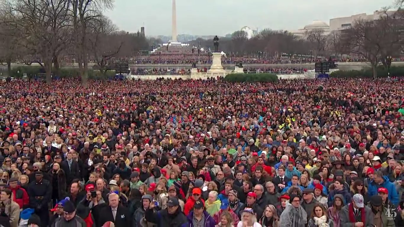 While Friday's presidential inauguration viewers already have a lot to focus on – President-elect Donald Trump, President Obama, former Secretary of State Hillary Clinton – it's also important to note the attendees. A photo of Trump's inauguration crowd mirrors his administration as a whole, one that's predominantly white and male. To be fair, there are some women and people of color in attendance (although some may well be protesters), but they're few and far between. President Obama drew a crowd estimated at 1.8 million people at his 2009 inauguration, and Trump was expected to host just a fraction of that number, which isn't surprising, considering he's the least popular president-elect of all time.