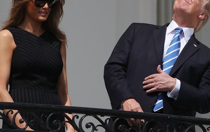 President Donald Trump took a break on Monday afternoon to witness what almost every other American across the country has been prepping for: The total solar eclipse. As everyone else was donning a pair of protective glasses or other types of gear, this photo of Trump looking at the eclipse shows him doing the one thing you're not supposed to do. And, honestly, it's the most the "Trump" thing to happen during his presidency thus far.