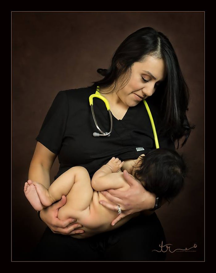 Ruby has taken 10 photos so far of breastfeeding moms in their "professional uniforms" and the professions range from all over. From a breastfeeding doctor, to a firefighter, to a nurse, to even a show girl — Ruby captures a wide variety of moms in drastically different uniforms but the main message stays the same — these women work hard and they're pretty bad ass moms.