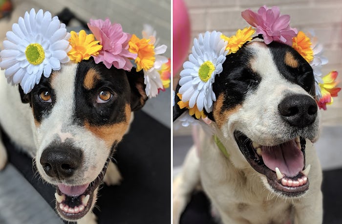 Freeman also hopes that Ima's adorable photo shoot will encourage people to adopt dogs instead of buying them. "So many people spend thousands of dollars of 'pure breeds' when we have amazing dogs being abandoned and are in need of your love," she tells Romper. "One thing I want to come out of this is please think about adopting before buying. You can't buy love but you can adopt it!"
