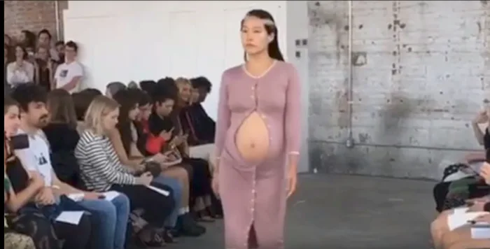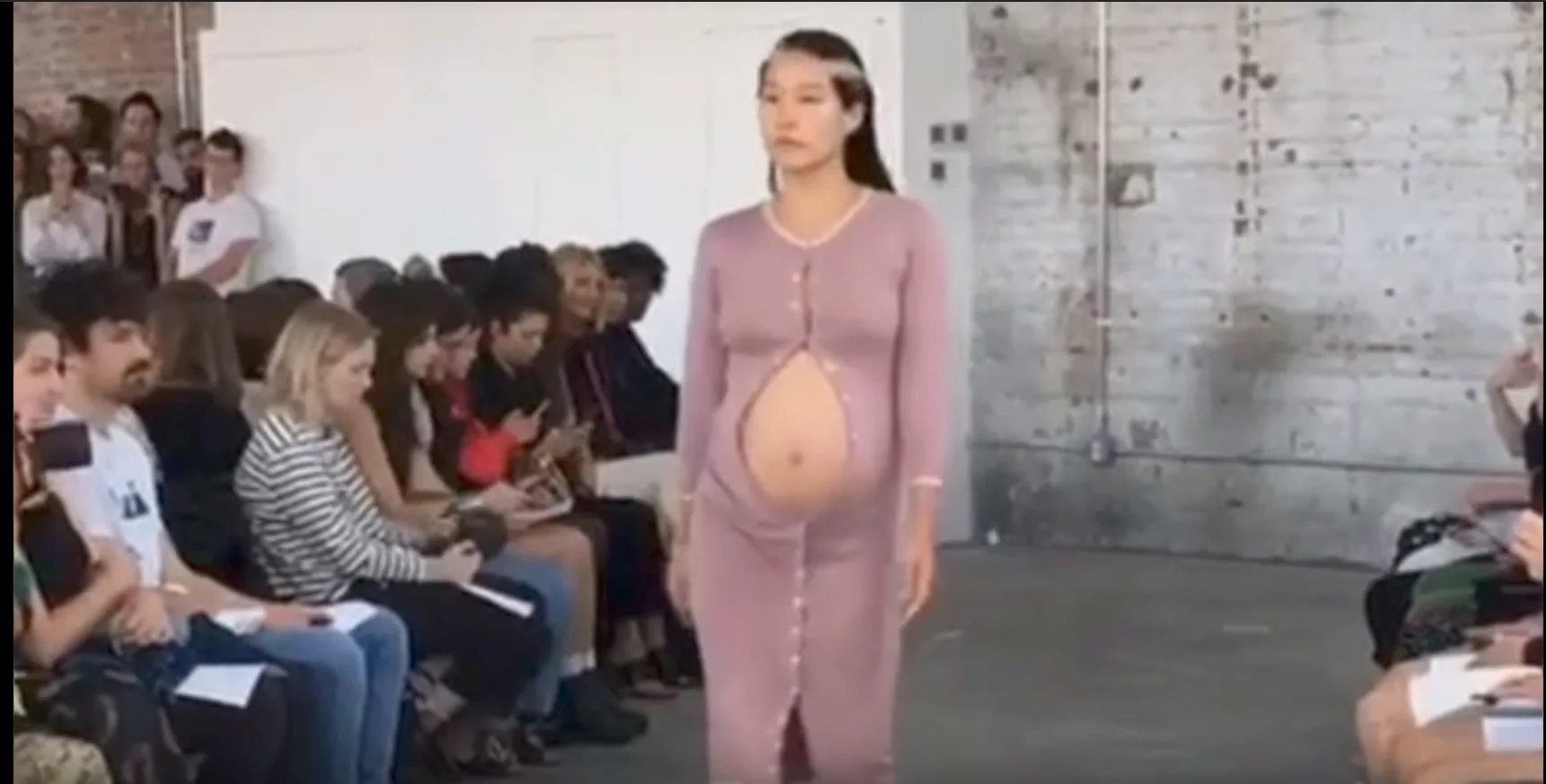 This upcoming spring, the hottest trend could very well be a pregnancy bump. No, really. During the fashion show for the brand Eckhaus Latta, one model walked in a mauve colored dress that perfectly put her bump on display. The photos and videos taken from the fashion show, that happened over the weekend, are all kinds of beautiful.