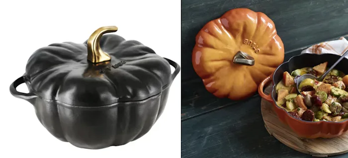A professional chef favorite, Staub is one of the premier brands in quality cookware. While their products are typically on the pricier side, the durability of their products and their ability to go from the kitchen to the table with ease is unmatched, and these pumpkin dutch ovens are no exception.