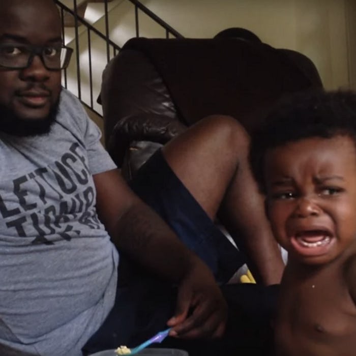 One stay-at-home dad did have the good sense to get it all on video, though. Inspirational hip-hop artist Beleaf is, first and foremost a father to two adorable toddlers, and he documents the beauty and hilarity of his daily routine in the video Patience or Lack Thereof. If you're a stay-at-home or even a work-at-home parent, you'll likely recognize many of these scenes from your own life: chasing down your kid to get them to eat anything, having impromptu dance parties, taking them outside for some playtime, the sticky messes, the crying for no reason, the always-treasured snuggles that remind you of why you're doing this in the first place. It's all there, and it's all part of Beleaf's latest web series, Beleaf in Fatherhood (which is a great title, by the way).
