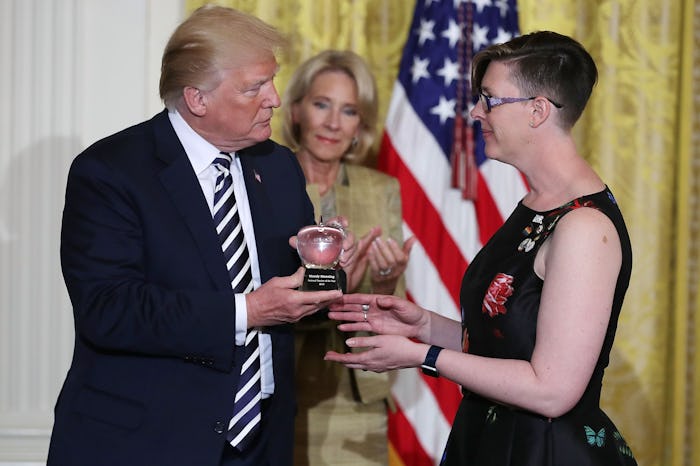 Manning attended the White House event and received her award from President Trump, who said that the teacher totally deserved to win the honor. "Her incredible devotion has earned her the adoration — total adoration, actually — and respect of students and colleagues throughout her school district, community and the entire state," he said, according to The Hill. However, Trump didn't mention that Manning's students were mostly refugees and immigrants, an issue that's pretty heated in this administration.