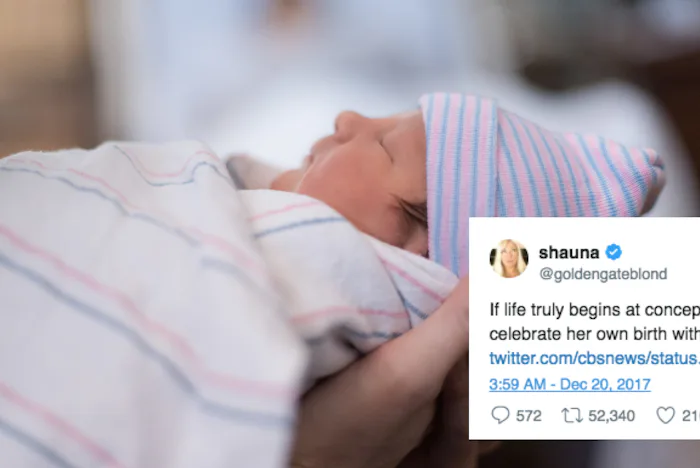 Others were quick to point out the same reality to those who believe life begins at conception. One tweet in particular has managed to attract a significant amount of attention. "If life truly beings at conception then this baby can legally celebrate her own birth with a martini," @GoldenGateBlond wrote. (So this!)