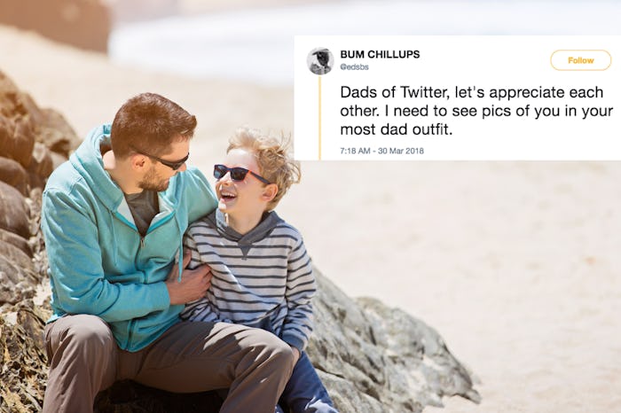 On Friday morning, a Twitter user and sports blogger who goes by the moniker Bum Chillups took to the social media platform to share an idea. What would it be like if dads supported other dads and their right to wear, say, khaki shorts with white tube socks pulled up to your knees (please note this is just a for instance and in no way based on my own father, of course)? He tweeted, "Dads of Twitter, let's appreciate each other. I need to see pics of you in your most dad outfit." And miraculously, the dads of Twitter were happy enough to respond.