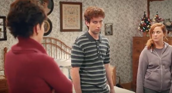 The skit, which was unfortunately cut for time, shows a disappointed mother (played by the always-hilarious Kate McKinnon) scolding her son (played by Kyle Mooney) and her daughter (played by Amy Poehler) for arguing. McKinnon tells the two squalling siblings that they better get along, because "Nana" is "dying, she's dying fast". So unless the two "get it together", they won't be opening presents.