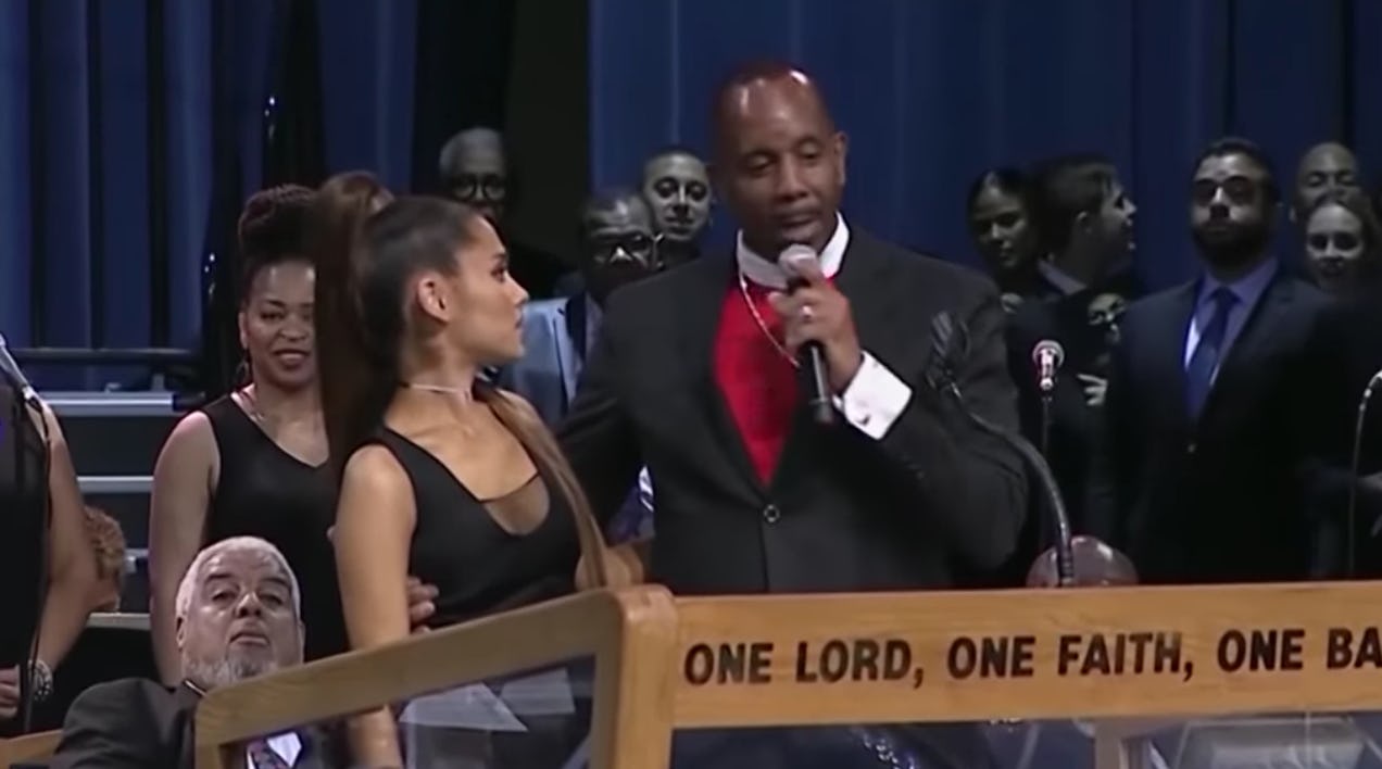 This Video Of Ariana Grande & The Bishop At Aretha Franklin's Funeral Is *So* Creepy