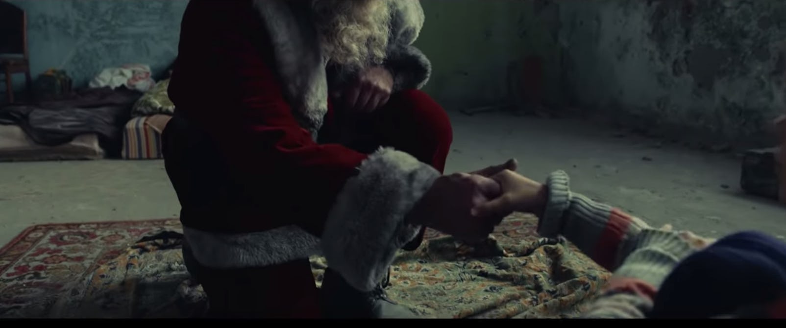 As Mr. Claus reaches his hand out toward the child, she does the same. In an instant, though, the camera shows the girl reaching out toward no one and nothing — signifying that Santa Claus was simply a figment of her imagination. A message on the screen then reads: "The only gift some children want this Christmas is their family." A brief scene of the girl reuniting with a family member follows, as well as the message, "Every year, we reunite hundreds of families torn apart by conflict, migration, and natural disaster."