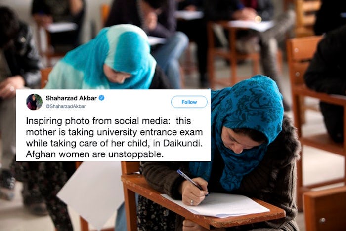This Viral Photo Of An Afghan Mom Breastfeeding Her Child While Taking An Exam Is So Inspiring