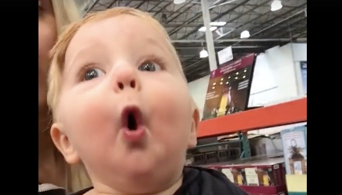 In the video, a little boy who is called Mick by a woman who appears to be his mother is being pushed through a large store in a shopping cart when his attention is captivated by just about everything that he wheels past in the holiday section. Wide eyed, making audible noises of awe, Mick can't get enough of the lights and decorations.