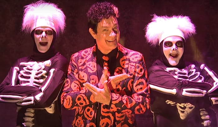 Depending on who you ask, some people quickly fell in love with Hanks' new character and some did not think David S. Pumpkins was a winner. But regardless of personal critiques about the sketch, David S. Pumpkins dancing along with his spunky skeletons has easily become this year's best Halloween meme and it's a festive treat for all that Hanks will reprise the role.