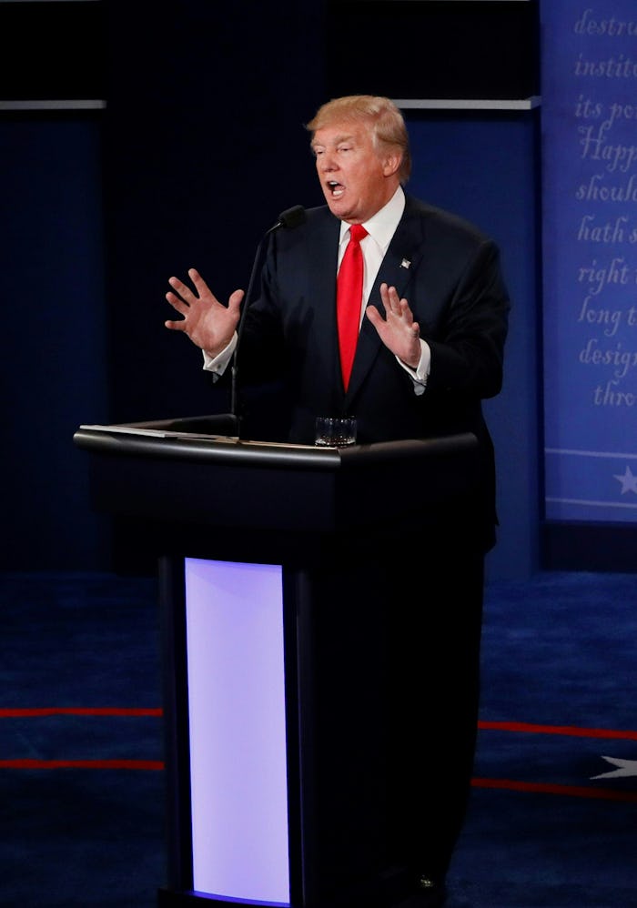 Because, whew, it's been a tough road from the second debate to the third. Several women have publicly accused Trump of sexual assault and harassment in the interim, and he responded to his resulting slide in the polls by making unsubstantiated claims that the election is rigged against him. Clinton, meanwhile, has kept a relatively low profile, presumably engaging in rigorous debate prep and deciding how to talk about the WikiLeaks hack that's revealed what's believed to be internal emails among her campaign team that show, among other things, that she does not like to apologize.