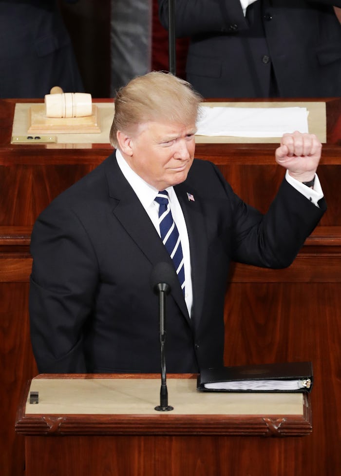 President Trump gave his first major "State of the Union"-style address on Tuesday night during a special joint session of Congress, and to no one's surprise, he made sure to hit all the typical talking points he championed on the campaign trail. Highlighting such topics as tax reform, "inner city" violence, the Affordable Care Act ("Obamacare" as it's more commonly known), and a "great rebuilding of the American military," the president — as a transcript of Trump's State of the Union speech showed — touched on a number of current hot-button issues that have landed him among one of the more divisive presidents in modern history. Trump also promised the country's "forgotten men and women" plenty of "good jobs that allow them to prosper and dream."