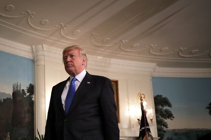 Wednesday evening, the Washington Post reported that special counsel Robert Mueller's investigation of President Donald Trump has expanded to include possible obstruction of justice charges, according to five separate sources. And it turns out that Trump has responded to obstruction of justice allegations the same way he responds to all the other pieces of news he dislikes: with a pair of angry early-morning tweets. "They made up a phony collusion with the Russians story, found zero proof, so now they go for obstruction of justice on the phony story. Nice," Trump tweeted just before 7 a.m. Eastern Time on Thursday. The White House did not respond to Romper's request for comment.