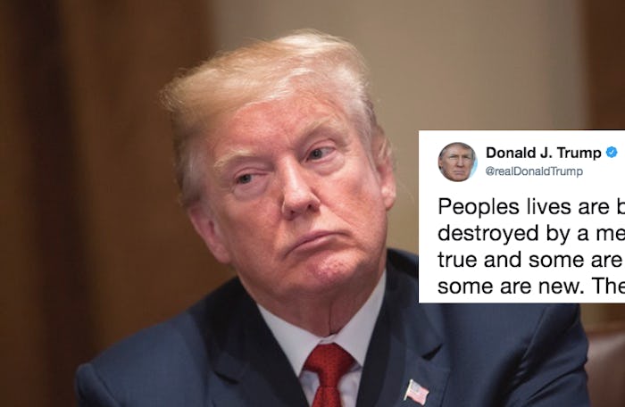 Romper has reached out to the White House for comment on the tweet, but did not immediately hear back. On Saturday, Trump tweeted, "Peoples lives are being shattered and destroyed by a mere allegation. Some are true and some are false. Some are old and some are new." The tweet continued, "There is no recovery for someone falsely accused - life and career are gone. Is there no such thing any longer as Due Process?"