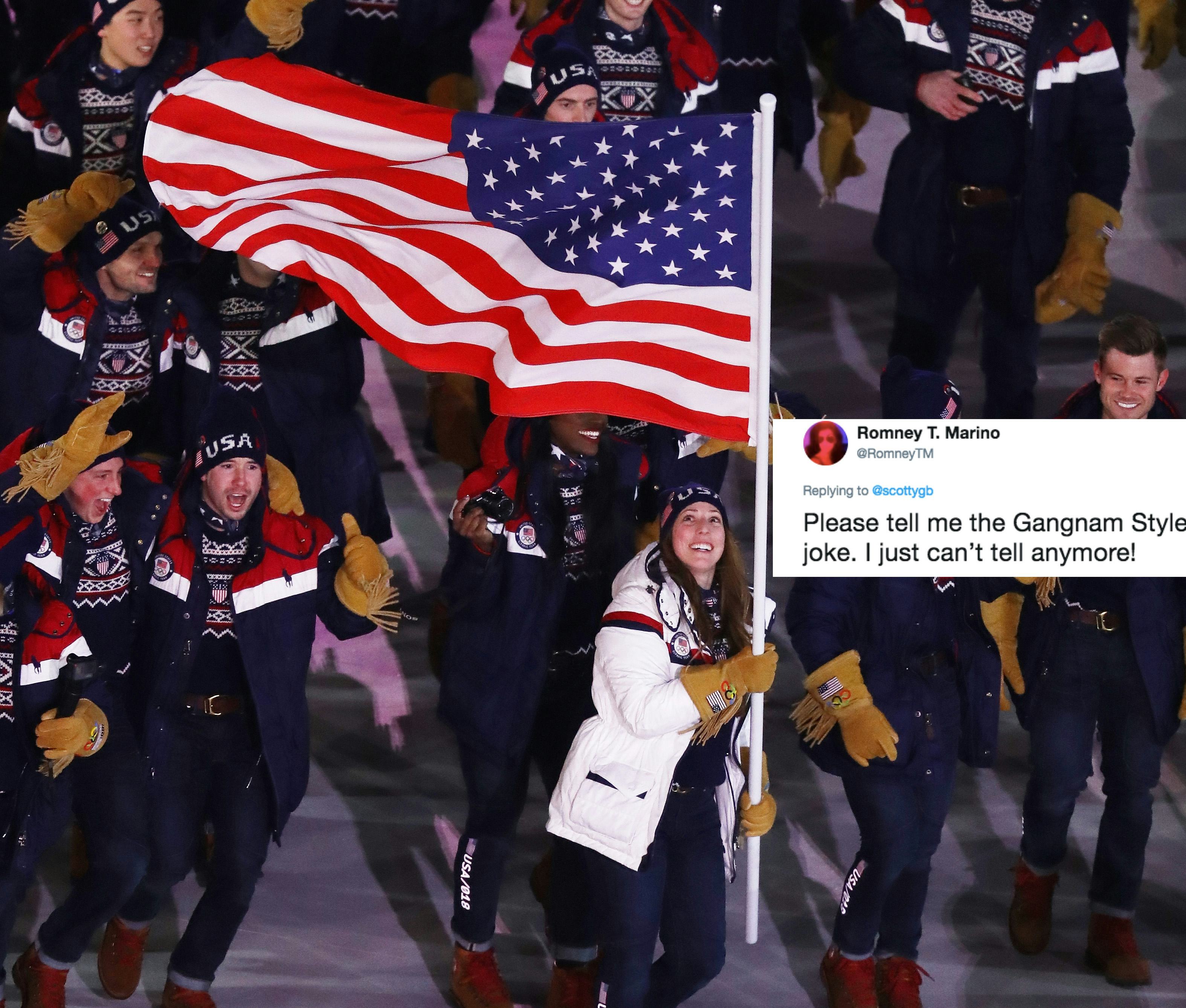 For the uninformed, the Winter Olympics opening ceremony is literally about kicking things off for the games, but because there's also a parade of all of the Olympic teams from every participating country, there's quite a bit of fanfare too, including music to keep them all moving. The tweets about "Gangnam Style" at the opening ceremony, however, show how divided viewers were about the former hit song playing as the United States team walked in.