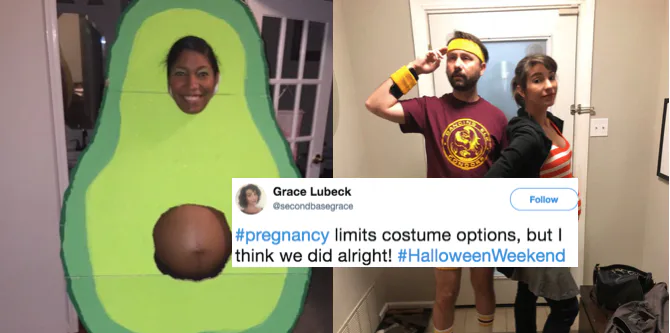 And hey, if your belly is particularly round on Oct. 31, why not just cut some corners and go as a ball? "My sister took full advantage of being pregnant on Halloween and dressed as a pokeball," a Twitter user named Taylor captioned this photo.