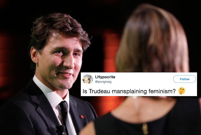 Back in 2015, Prime Minister Justin Trudeau was newly elected to govern Canada. He made headlines for being (let's face it) incredibly adorable, but also for being a proud feminist. People loved it, and loved him for being this modern ideal of an egalitarian, woke politician. But even Trudeau has his off days. And when Trudeau told a woman to say "peoplekind" instead of "mankind," and Twitter rolled its collective eyes like, calm down, Justin. We get it... you're a feminist.