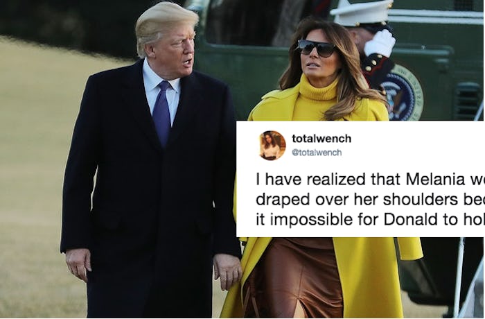 That funky way Melania "wears" all of her jackets? The way she strategically places her purse? As far as Twitter is concerned, these are calculated decisions made for a sole purpose.