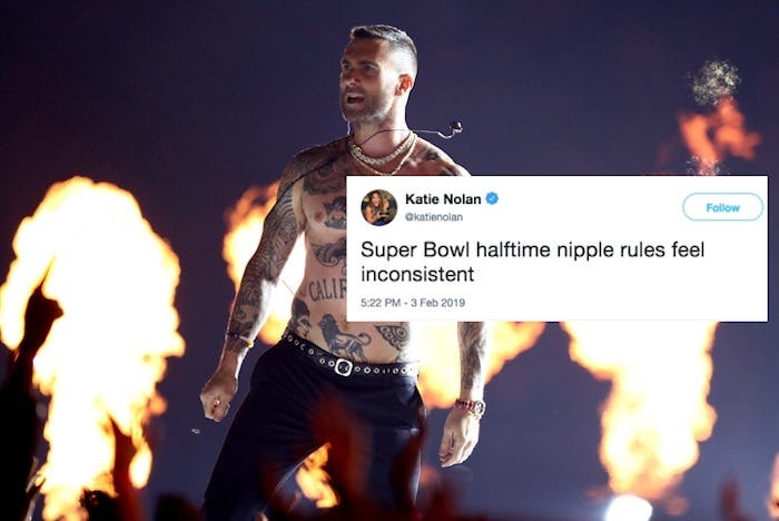 Headlines about the halftime performance were a little less biting, but admitted the show was pretty lackluster. The Daily Beast called it "just as mind-numbingly dull as you feared," while Variety quipped "no shirt, no stumbles, no surprises." There certainly wasn't anything disastrous about the show, but there wasn't anything particularly interesting about it either. And, of course, Adam Levine stripping off his shirt midway through the performance sounded an alarm amongst Janet Jackson stans, who quickly jumped in to point out the halftime show's apparent nipple double standard. Viewers also hoped that the halftime show would somehow pay tribute to Kaepernick's cause, particularly since no one appeared to take a knee during the national anthem. But no such breakout moment occurred, leaving Maroon 5 with a performance that will likely be forgotten come Tuesday.