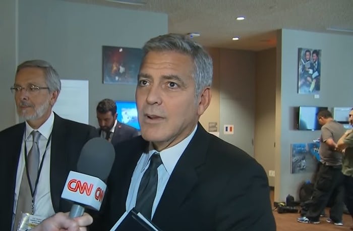 It's not just the kids who suffer when a couple divorces. When a marriage ends, friends usually find out from a phone call or maybe a text message, not from a reporter. But George Clooney heard about Angelina Jolie and Brad Pitt live on TV, and it was awkward and sad all around. Clooney was at the United Nations General Assembly on Tuesday, attending a round table with President Obama addressing the refugee crisis when TMZ broke the story of Jolie and Pitt's divorce, which was soon confirmed by the couple.