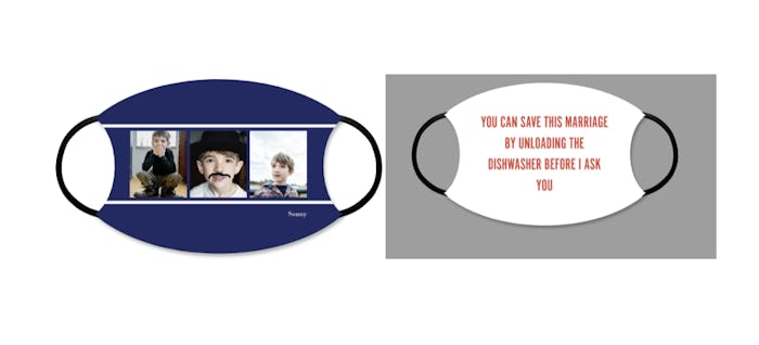 The store's site has an easy to use "customize" feature for masks. It's basically the same thing you'd use to design your own coffee mug. Except instead of designing a last minute Father's Day gift (can never go wrong with a photo mug), now you're designing something to help battle a global pandemic.