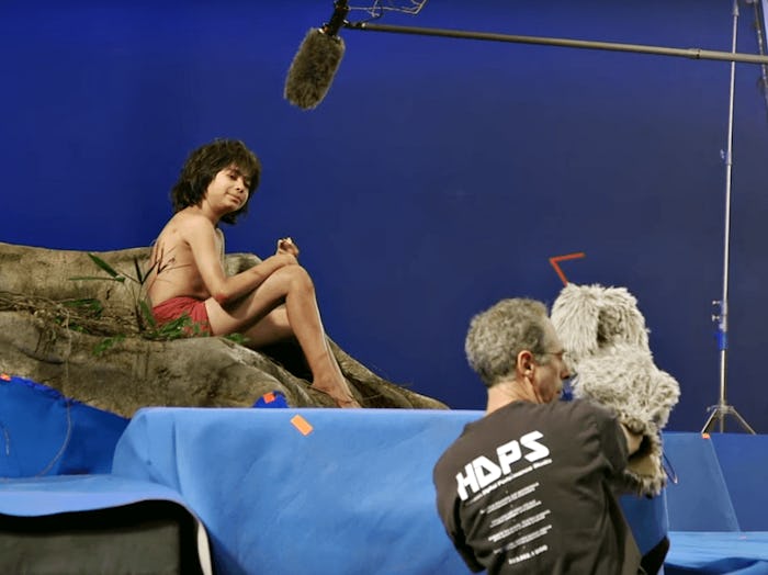 Disney is getting ready to take on the wilds of the jungle wilderness with the premiere of The Jungle Book in theaters this Friday. Disney has updated the 1967 classic animated film with an all new "live-action" cast — but seeing as how most of the cast are wild animals, how did Disney manage to pull it off? Was The Jungle Book shot entirely on green screen? Technically, yes — but if you want to get specific, it was really filmed against blue-colored screens, so any on-set greenery would provide contrast.