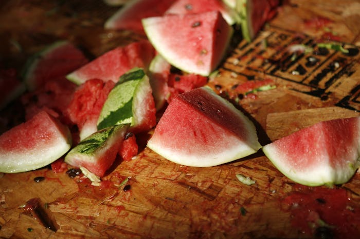 On Thursday, Twitter user allycxt tweeted a short clip of a woman cutting up a watermelon in chunks with such precision and skill, it defies all logic. She doesn't hesitate once as she separates the melon from the rind, then dices the fruit in mid-air. IN MID-AIR. It's beautiful work.