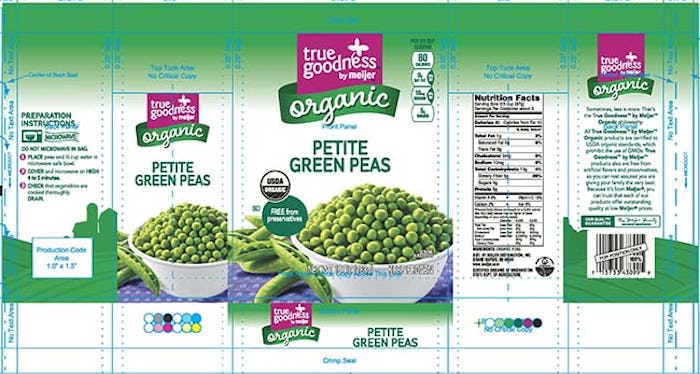 The recalled peas sold under this brand will have a "use by" date of Nov. 26, 2017.