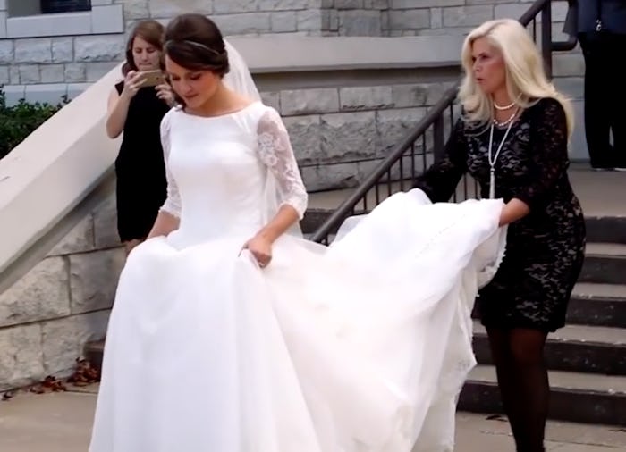 Another common Duggar family tradition is to take a piece of mom Michelle Duggar's wedding dress. Brides reported that all the Duggar daughters get a small piece of the dress Michelle and her mother wore on their wedding days. Jinger Duggar, who married Jeremy Vuolo in November 2016 according to People, opened up about the tradition on Counting On. Jinger shared that they incorporate the piece "somewhere in our dress." There does not appear to be a hard and fast rule for where they put it. According to Brides, Jill used her piece as a handkerchief while Jinger sewed hers to the inside of her dress.