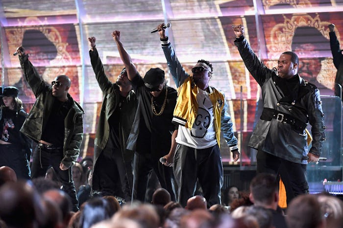 No one can be entirely sure, of course, but it's likely a safe bet he wasn't too pleased — if he knew who the iconic hip-hop group even was. (Put money on that, if you so desire.) As noted by The Hollywood Reporter, the performance itself was chock full of blatant anti-Trump statements: At one point the group, along with Busta Rhymes and Anderson .Paak, openly thanked Trump, whom they referred to as "President Agent Orange" for "perpetuating all the evil that you’ve been perpetuating throughout the United States."