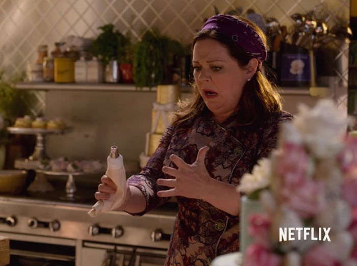 In the trailer for the Gilmore Girls revival that showed a scene of Sookie, viewers saw her in a kitchen, presumably decorating cakes, with a tube of frosting in her hand. But anyone who decided to binge on the four part series right away knows that this scene is somehow still absent by the time Episode 4 rolls around.